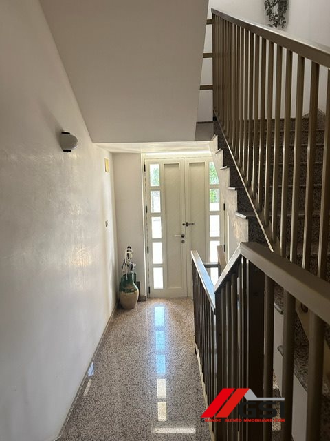 Comfortable and well distributed, it consists of three bedrooms, two bathrooms, a large eat-in kitchen and a bright living room with large windows overlooking a perimeter terrace that surrounds the entire house, giving brightness and livability in every room.